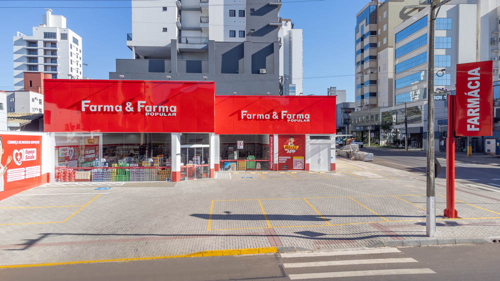 É com grande satisfação que anunciamos a entrega da farmácia FARMA E FARMA, com 330m² de área construída, localizada na Rua Sete de Setembro, esquina com a Rua Condá, em Chapecó.